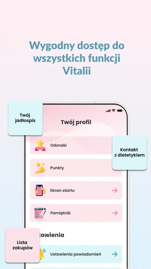 Lista funkcji dostępnych w aplikacji Vitalia: