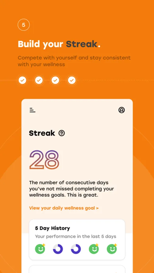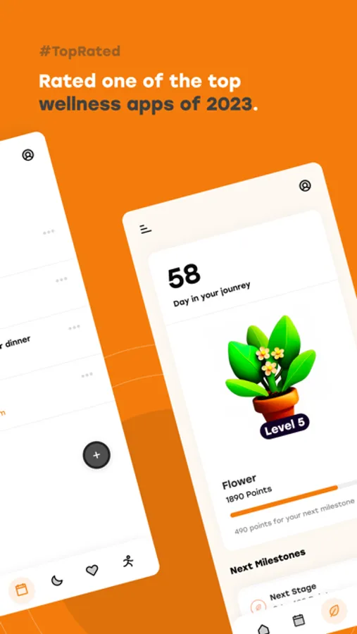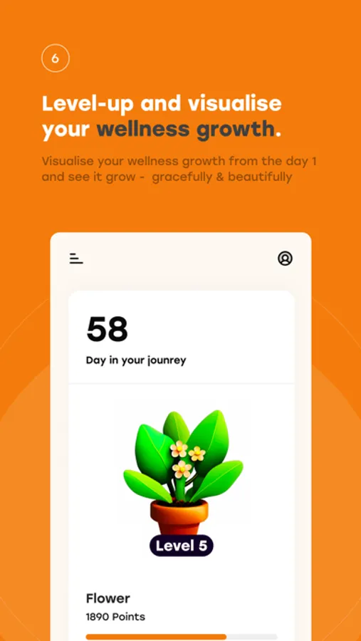 3. Milestones: We added level-ups to help keep you motivated to come back every day. Rather than using complex graphs, we used a plant’s growth as a metaphor for your wellness growth via incremental milestones.