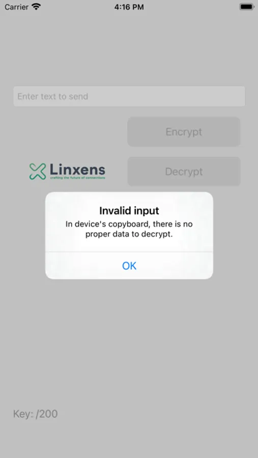 The app is to be used with dedicated crypto NFC Tags. To encrypt a message, the user must type the message in the text field and let it encrypt Tag by pressing the encrypt button and using a NFC session and dedicated cryptographic NFC Tag. To decrypt, the user must copy the encrypted message to the device's clipboard and let it decrypt by pressing the decrypt button, using NFC session and the dedicated NFC cryptographic NFC Tag.