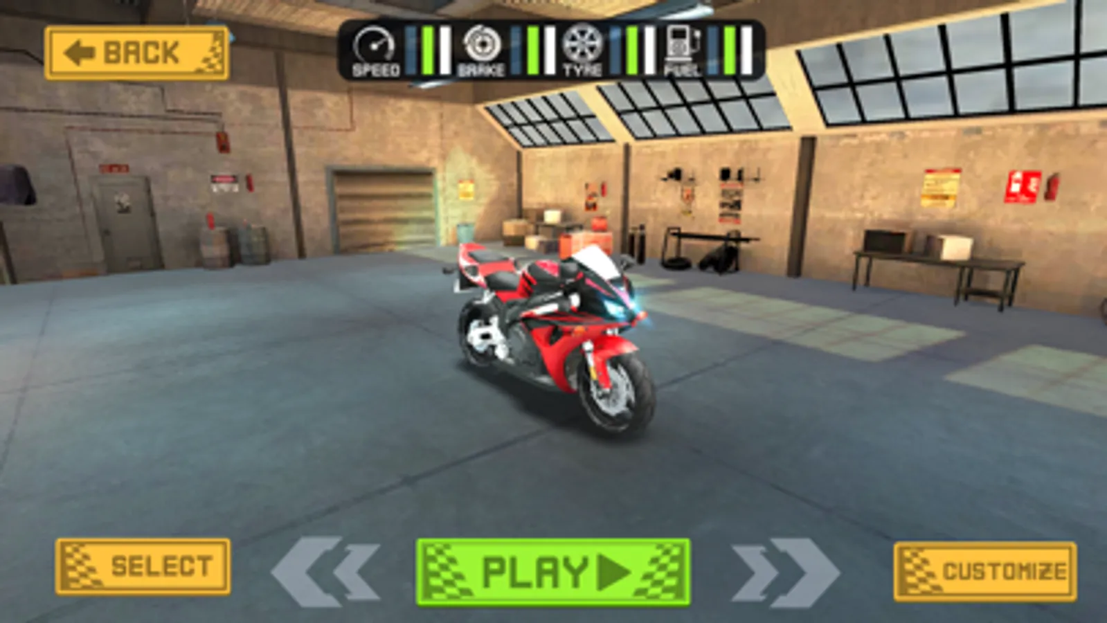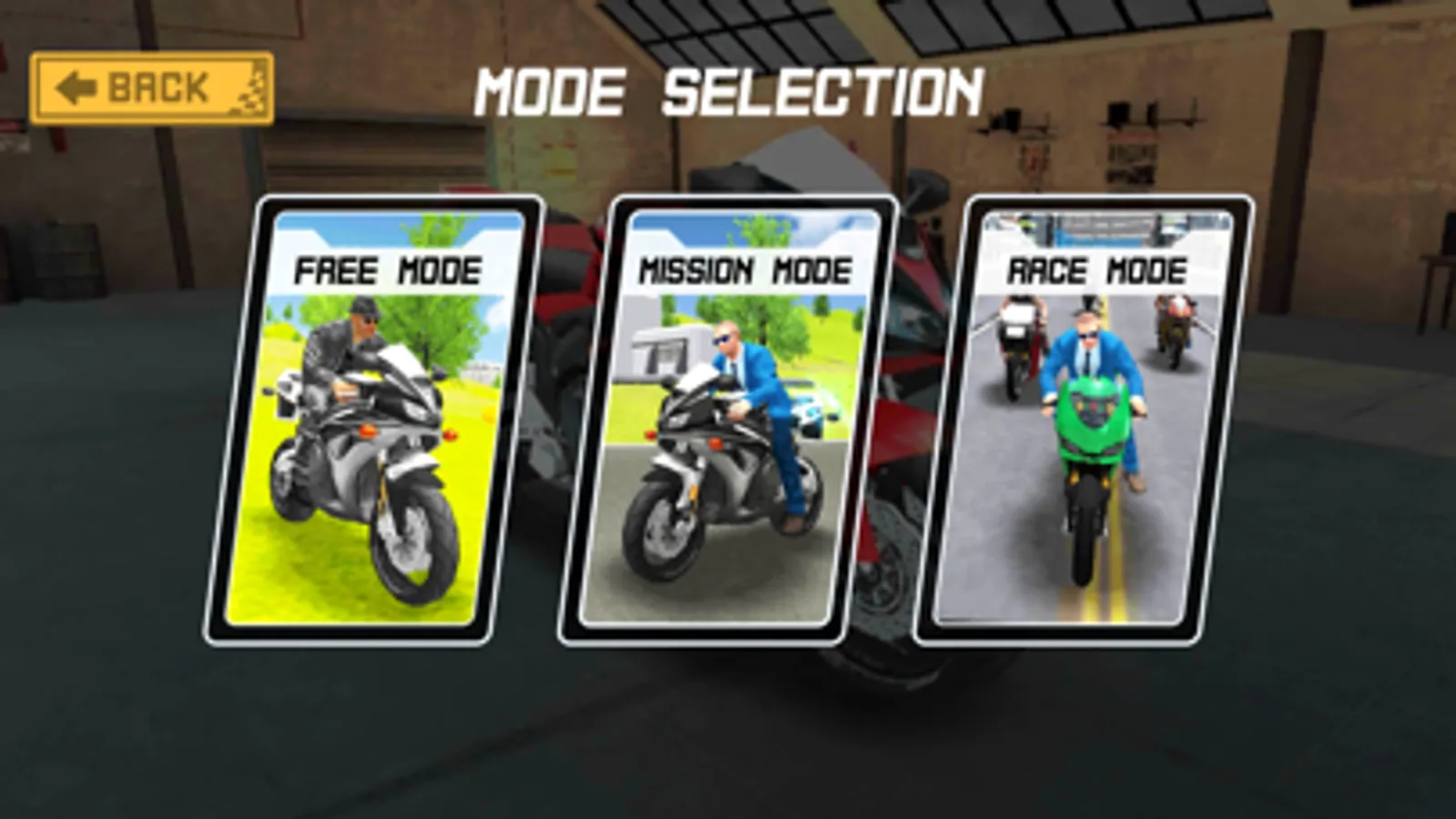 Your heavy sports bikes are waiting for you, they are in numbers in your bike garage. You can customize and modify your bikes on you wish.