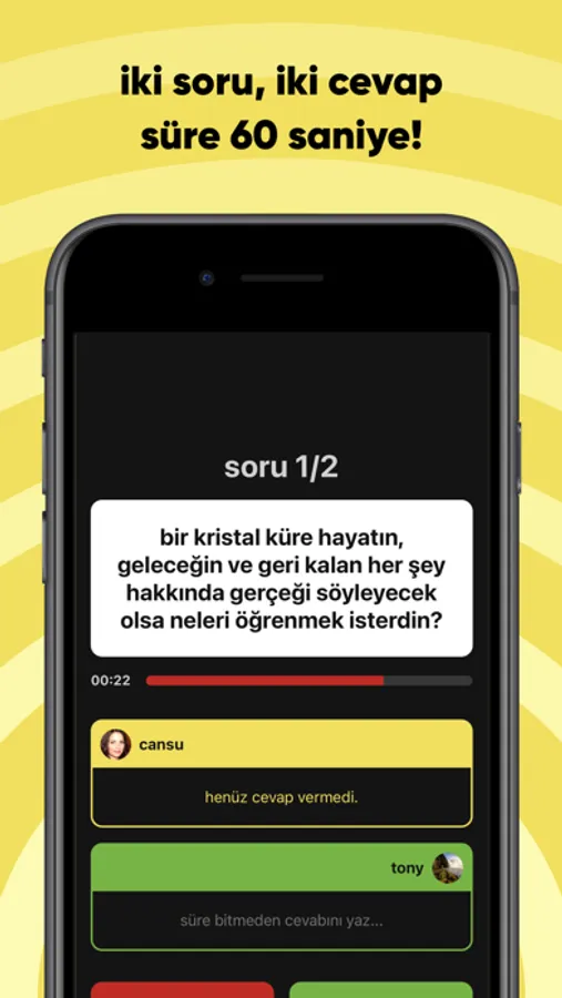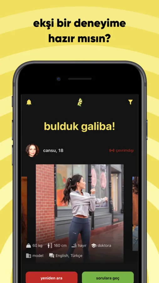 Set your criteria, search for a match, as you have fun at the Q&A stage learn about the perspectives of the users you match with, meet and chat!
