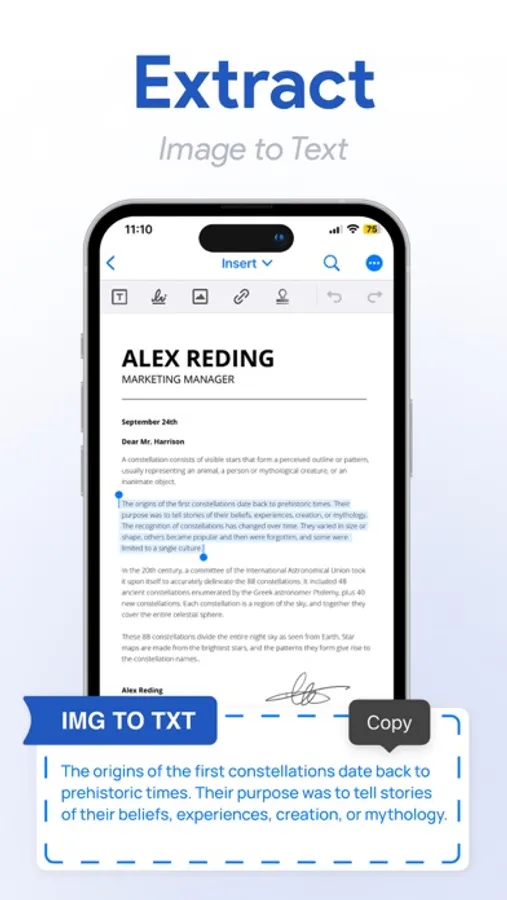 5. PDF reader, Additional pdf converter features added recently e.g text to pdf, excel to pdf, images to pdf.