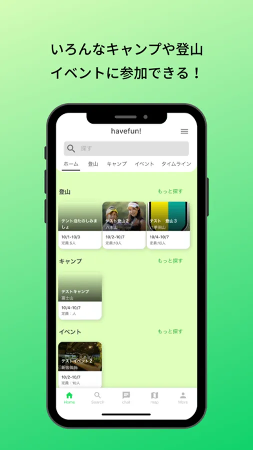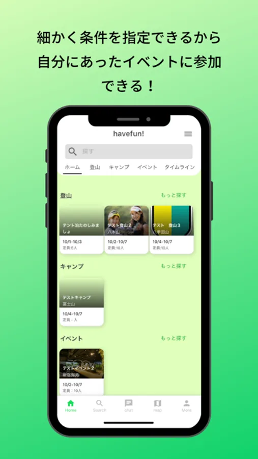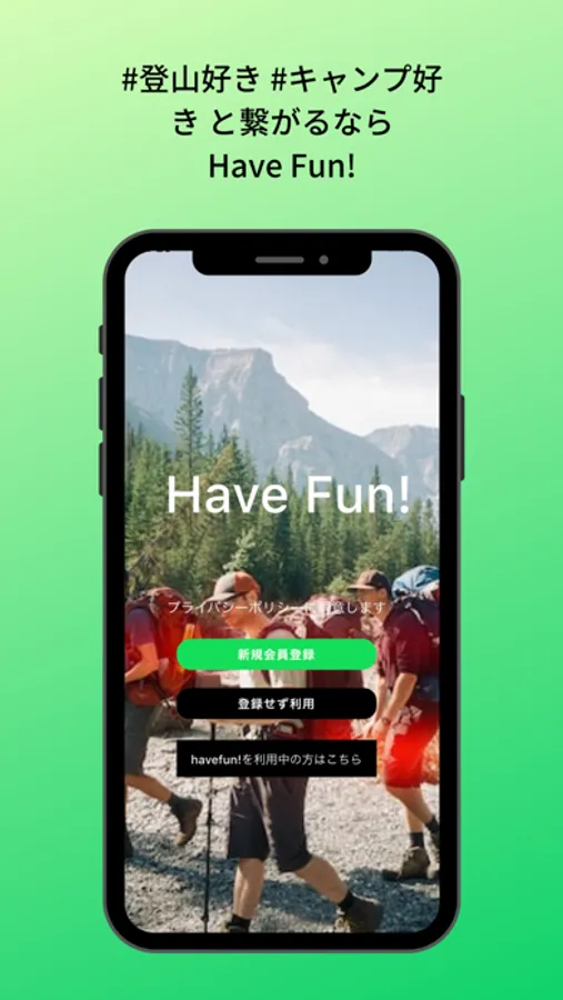 「登山」と「キャンプ」に特化したマッチングアプリです。