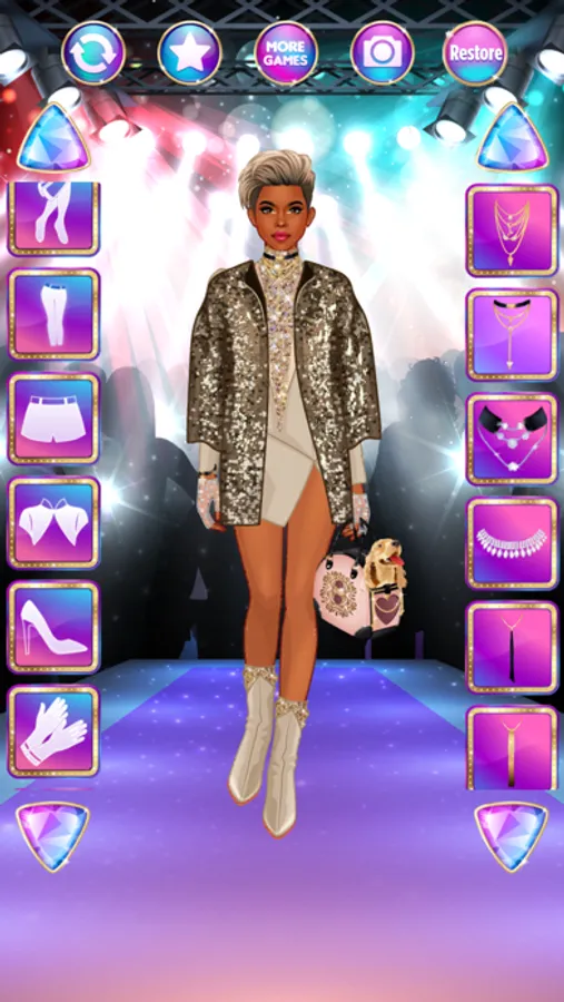 As a young fashionista, you’re sure to come up with great designer ideas: pick a fancy hairstyle, a beautiful dress or other modern clothes, some trendy accessories – create a unique outfit for each it girl. Show your designer skills and upgrade them with this high fashion game for teens. 8 backgrounds help you set up the context: catwalk, red carpet, photo session at a studio, beauty & fashion magazine cover, tropical resort, mall, boutique, beauty salon, and fashion show. Have fun in the fashion icon model makeover.