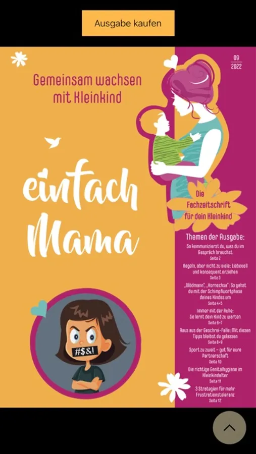 Genau deshalb haben wir die neue Fachzeitschrift "einfach Mama – gemeinsam wachsen mit Kleinkind" entwickelt. Wir wollen dich dabei unterstützen, mehr Sicherheit bei allen Erziehungs- und Entwicklungsfragen zu erlangen. Mit praktischen Tipps & Methoden helfen wir dir, euer Familienleben stressfreier und harmonischer zu gestalten. Unsere Organisations-Profis verraten dir ihre besten Tricks, wie auch du als Mama dir kleine Ruhe-Inseln schaffen kannst, um zu Kräften zu kommen.