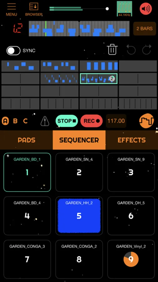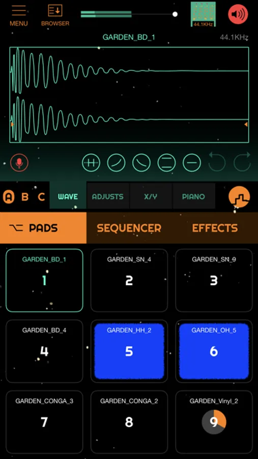 - Pads can be turned polyphonic, import a piano-like sample and play and sequence chords with a single pad.