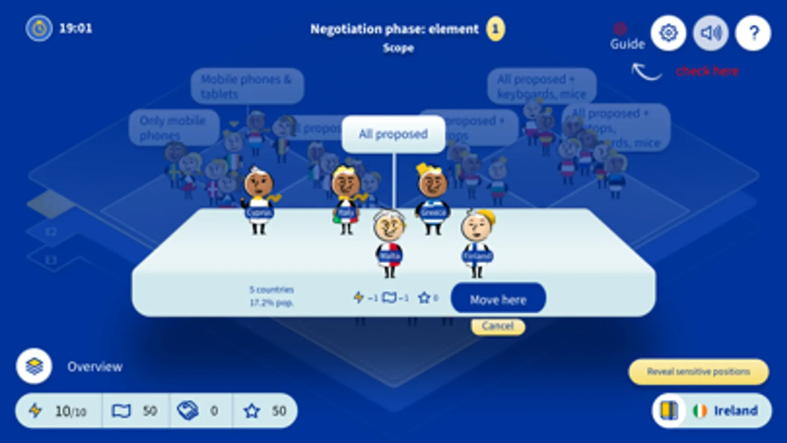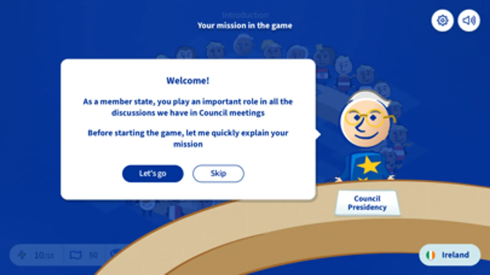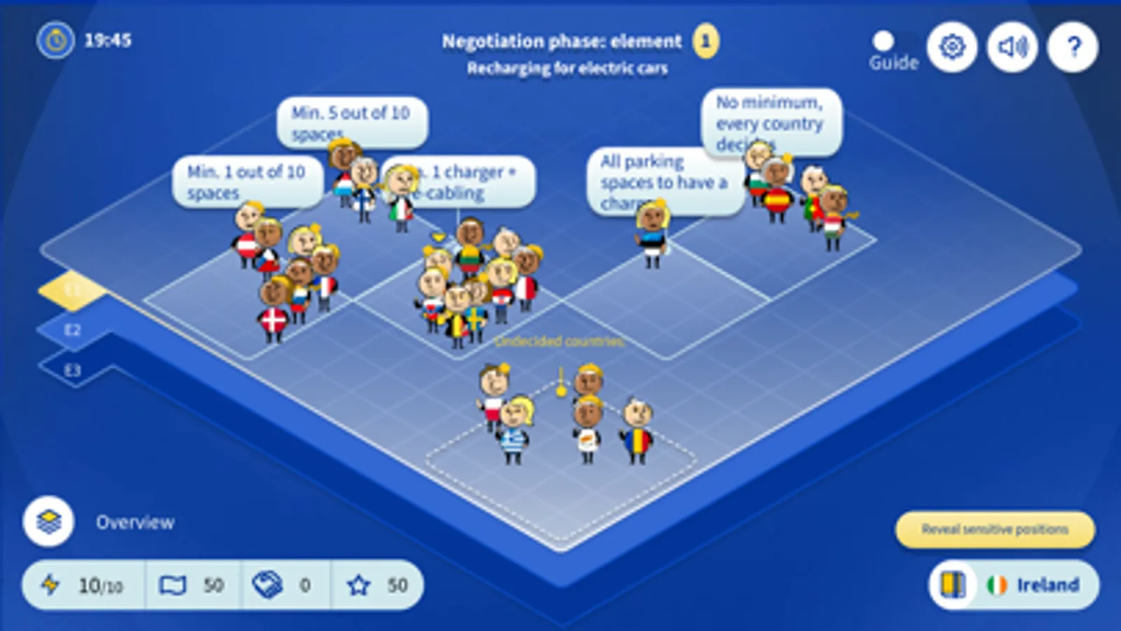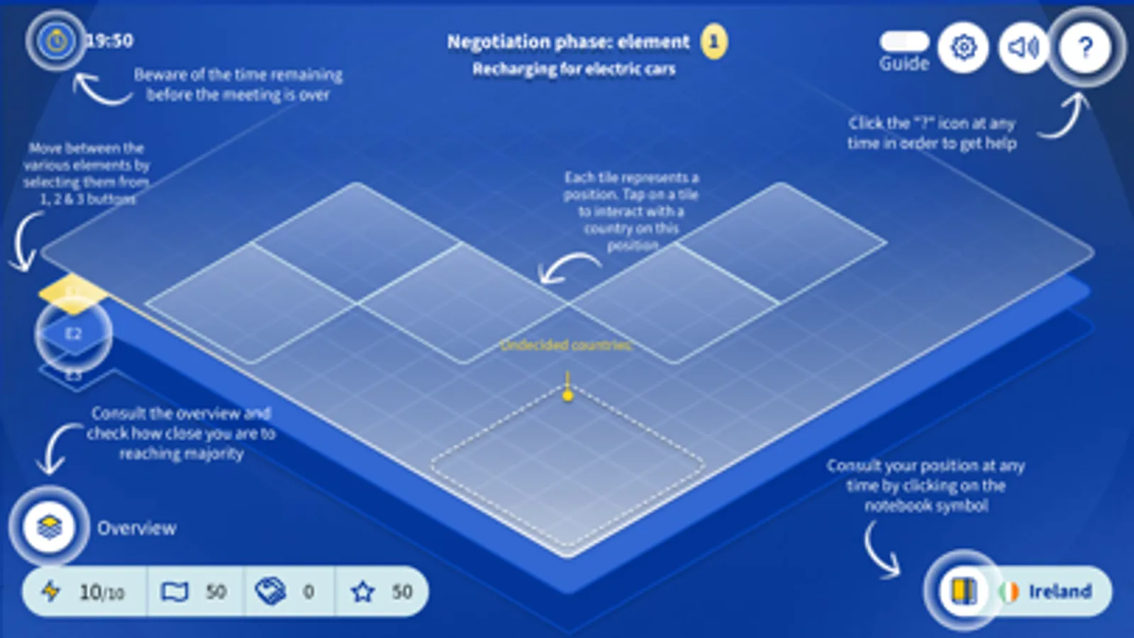 Customise your avatar, choose your country and topic and start your adventure . You will be challenged to put your country’s position forward and negotiate with the other EU countries. The objective is to allow the EU Council to reach an agreement.