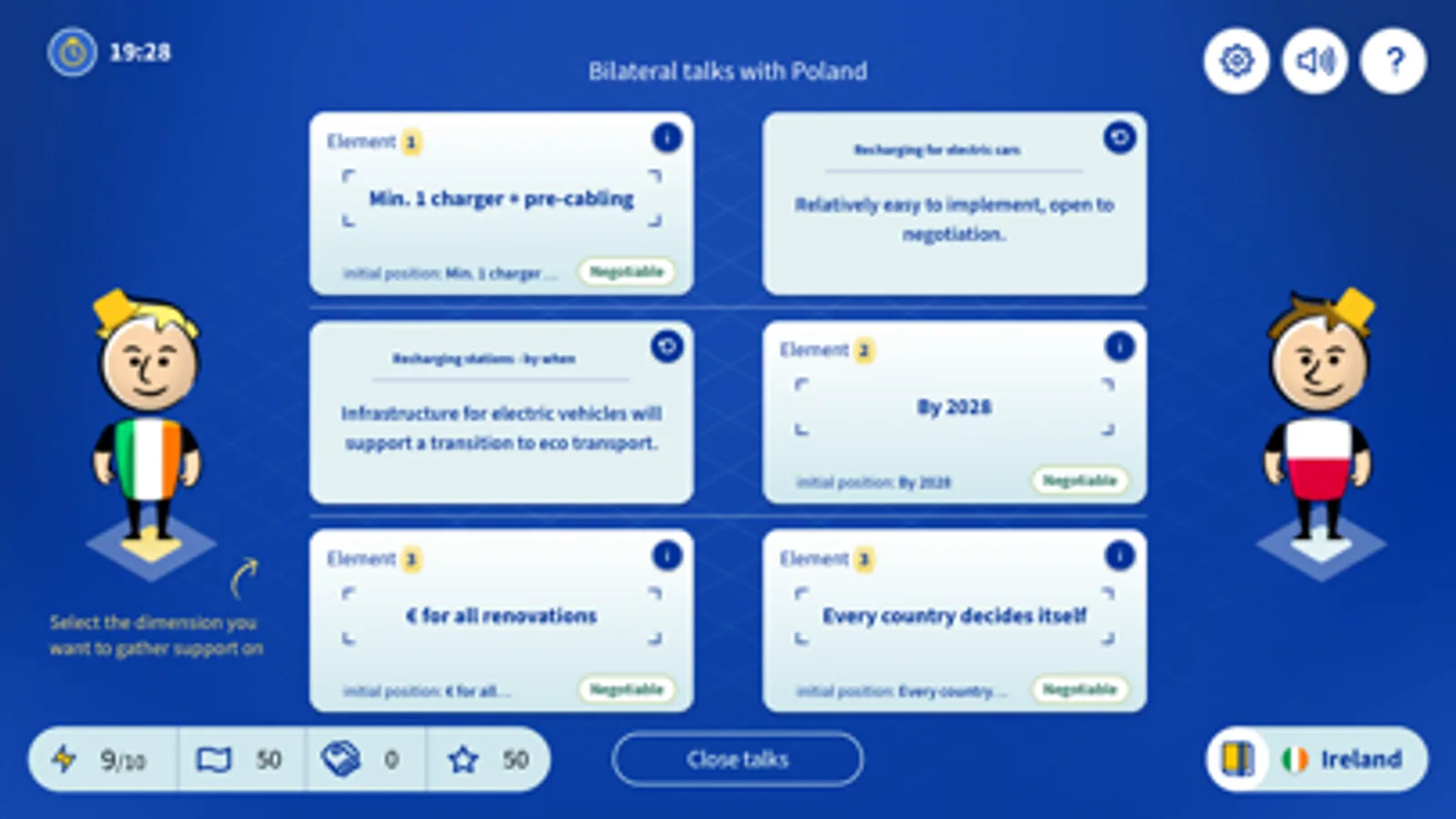 Disclaimer: this is an educational game based on the real negotiation process and real topics. However, the negotiation procedures have been presented in a simplified form and gamified, with the addition of fun elements and a degree of abstraction.