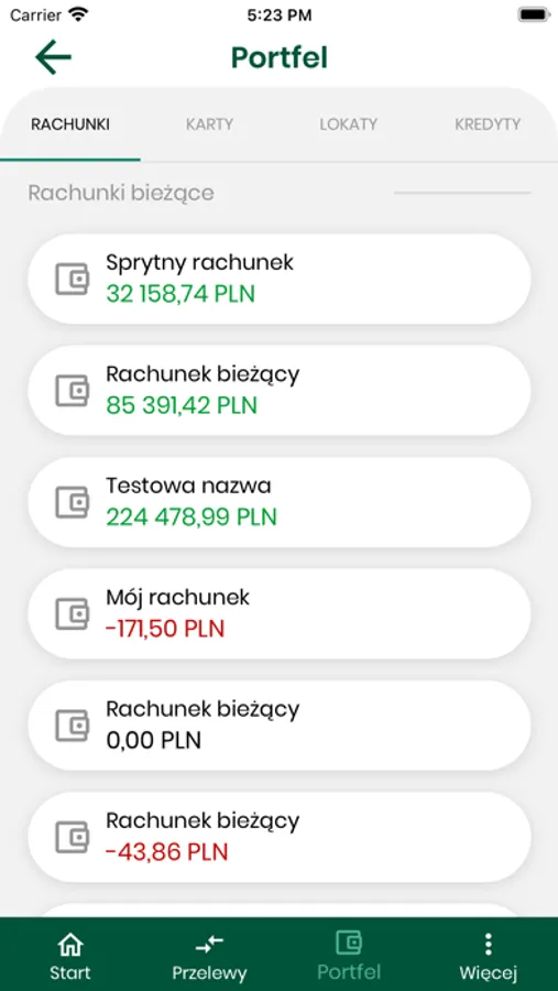 - prezentowanie rachunków, kart, lokat i kredytów klienta,