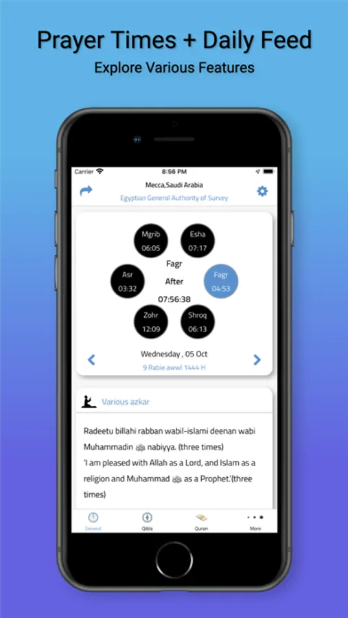 • Notifications of prayer times , azkar , fasting and many more.