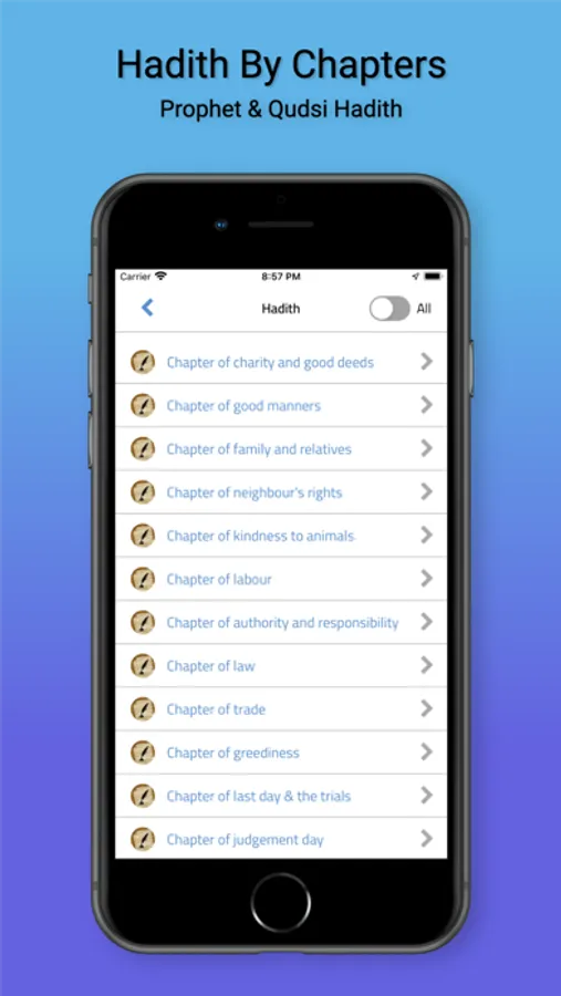 • Prophetic and Qudsi hadith as said by Prophet Mohamed PBUH classified in chapters.