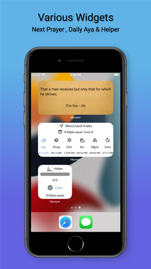 • Various widgets to show next prayer , daily quran verse and track your prayers.