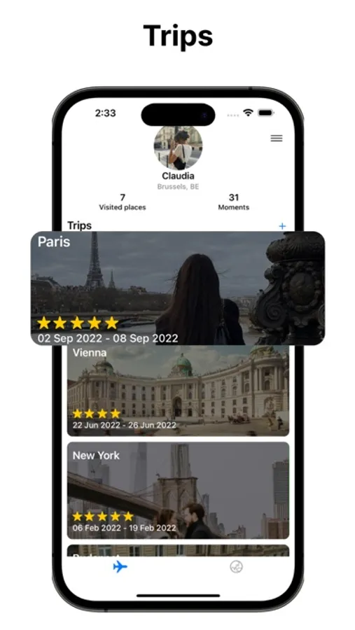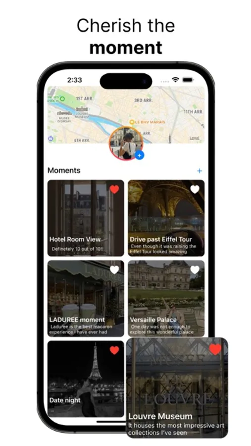 Track your path through your life with Travll, your new travll diary. Save trips and recreate moments to take a look back as soon as you open the app. Add stories and more…