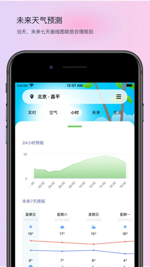 曲线图祝您查看未来七天最高/最低温度,更加合理规划出行穿着,