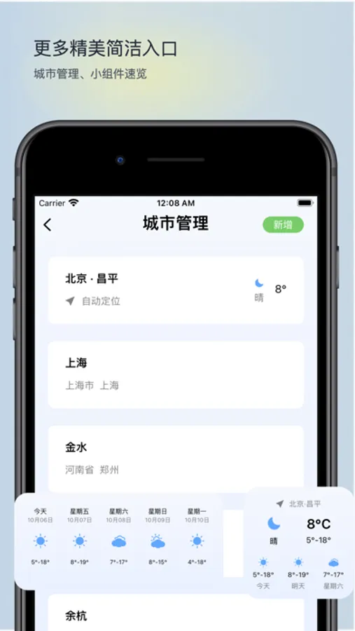 支持小组件,将小组件添加到屏幕来快速预览即时或未来的天气预报