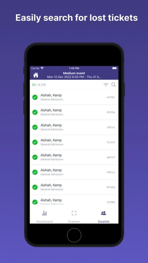 - Easily filter your door list by ticket type and sort by first name or last name.
