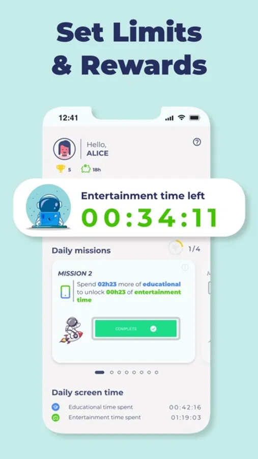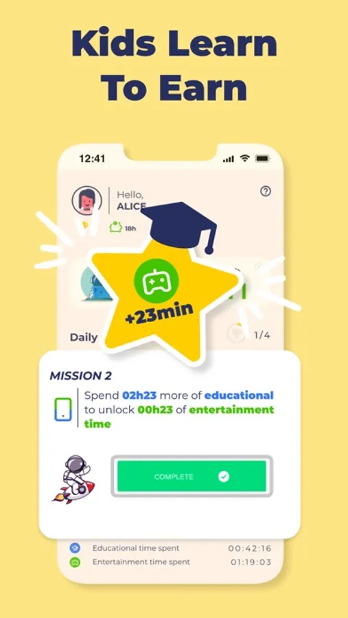 Kids will have to work on picked educational apps to win entertainment credits on their device. “Work hard, play hard!”