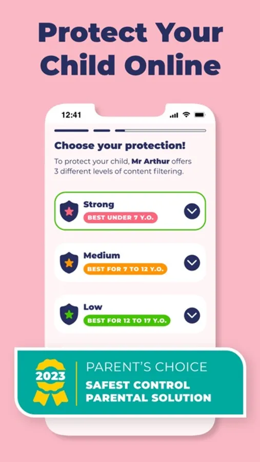 Mr Arthur provides 3 levels of content filtering (adult content and more) to protect your child. You can choose your protection between :