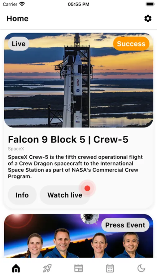 BSN is the best spaceflight app on App Store! It will keep you up to date with what's happening in Space. Help you track and be informed about rocket launches, space events (static fire tests, space station activities...). There are also News to keep you up to date with whats happening in spaceflight industry. And we cant forget about notifications so you don't miss a single second!