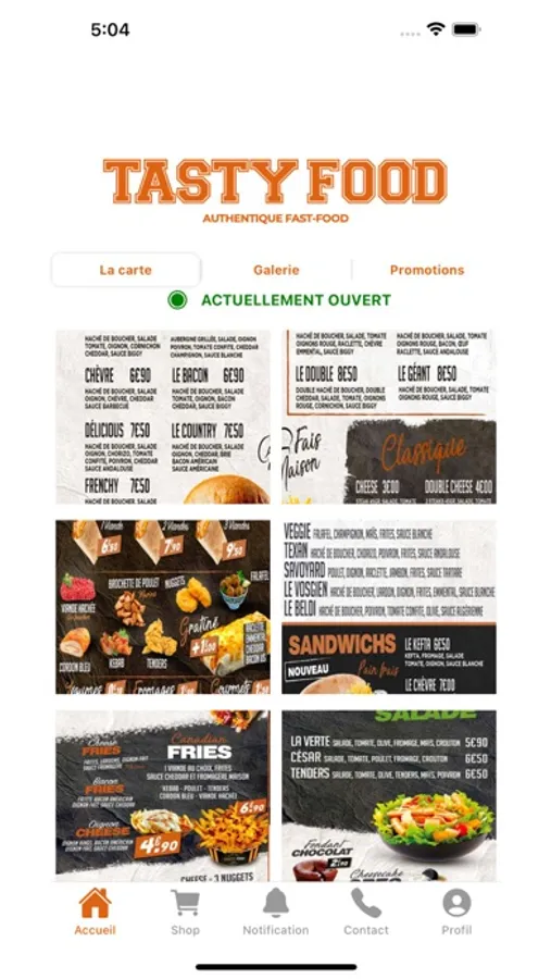 Grâce à l’application Tasty Food vous pouvez gérer vos commandes plus facilement, profitez de votre carte de fidélité digitale et être informés plus rapidement de nos promotions et actualités.