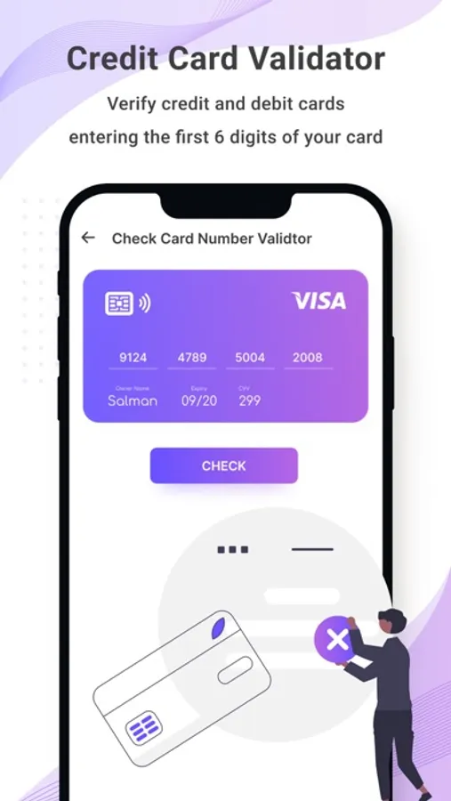 In this Application, users check their credit/debit card is valid or not. Free Credit Card Number Validator is free application allows you to check your card number and specify the type of card. The algorithm used to process the Luhn algorithm or Lahn formula, also known as the modulus 10 or mod 10 algorithm, is a simple checksum formula used to validate a variety of identification numbers.