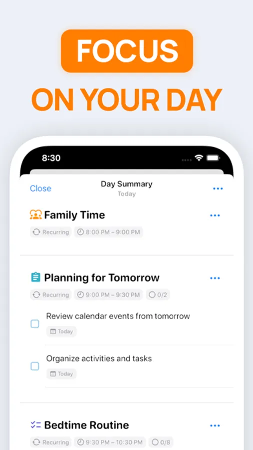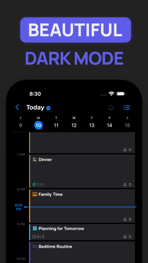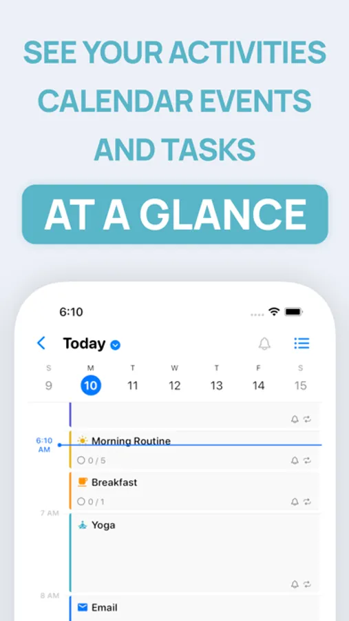 The app is perfect for people with ADHD, as it provides a comprehensive view of your entire day. You can see how your activities and appointments fit into your daily schedule, helping you avoid conflicts and manage your time more effectively.