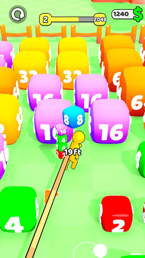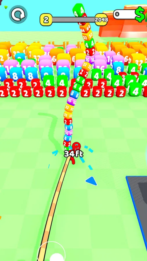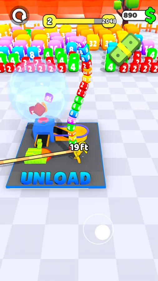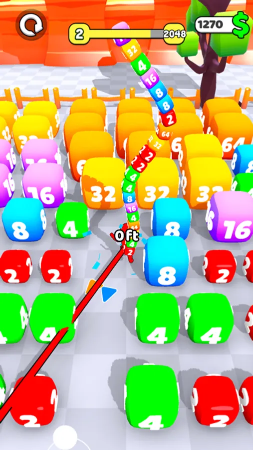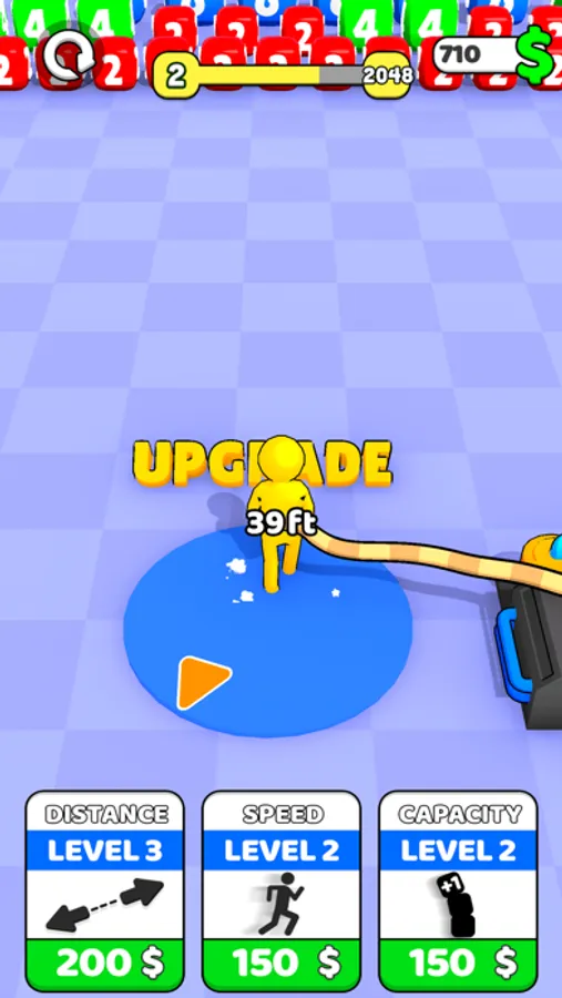 You have to collect all the cubes to reach reach the goal. Upgrade your distance to go further, upgrade your capacity to carry more cubes and upgrade your Speed to collect them faster! Once you reach your goal go to the next arena and Reach higher numbers