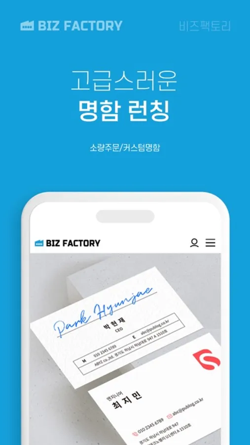 비즈팩토리에서 명함, 전단, 리플렛 등 홍보물을 쉽고 편리하게 만들어보세요.