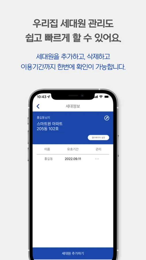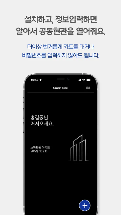 1. 스마트폰을 소지하기만 하면 다른 조작 없이 내가 사는 아파트의 공동현관을 열 수 있습니다.