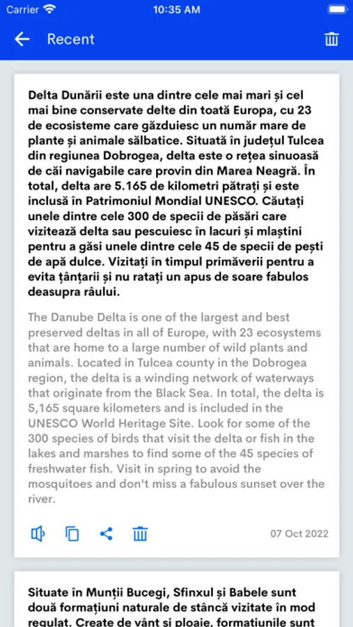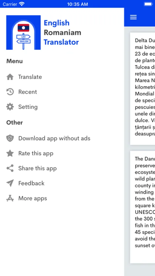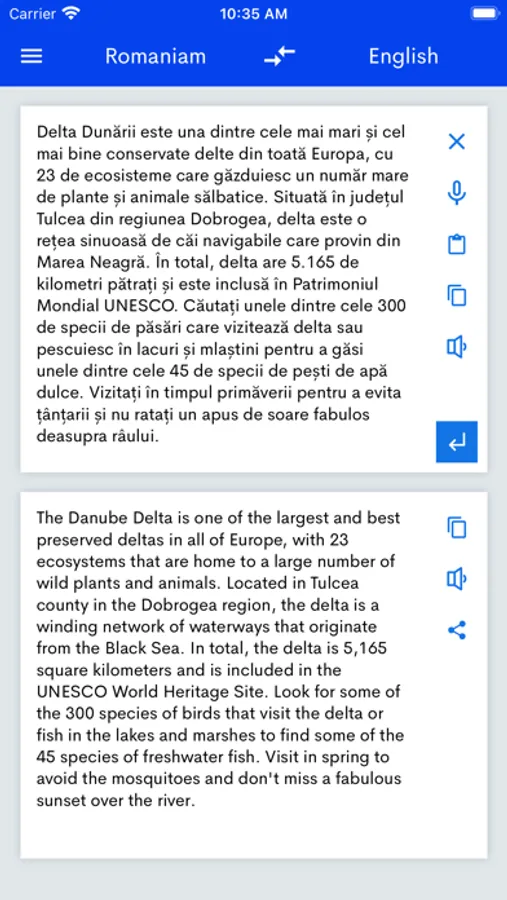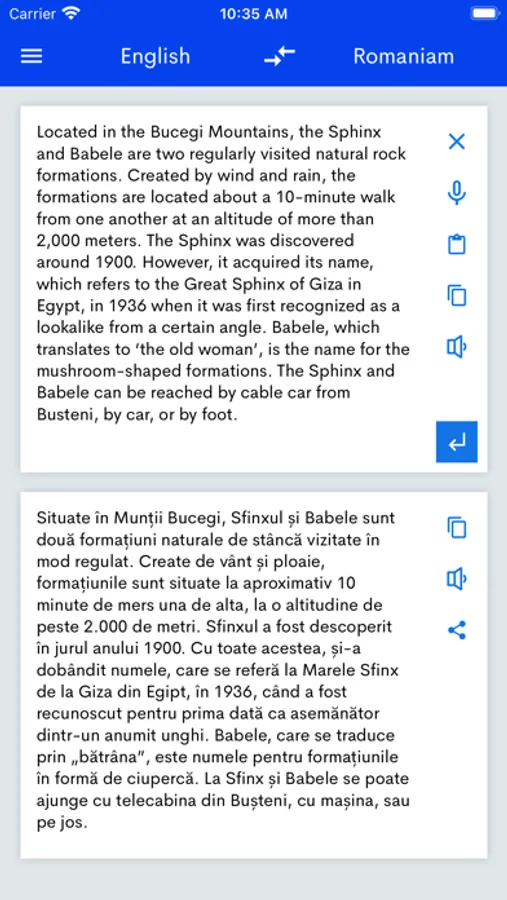 With this translator, you can easily translate words and text from Romanian to English and from English to Romanian. You are able to translate words and even sentences, in just a split second.