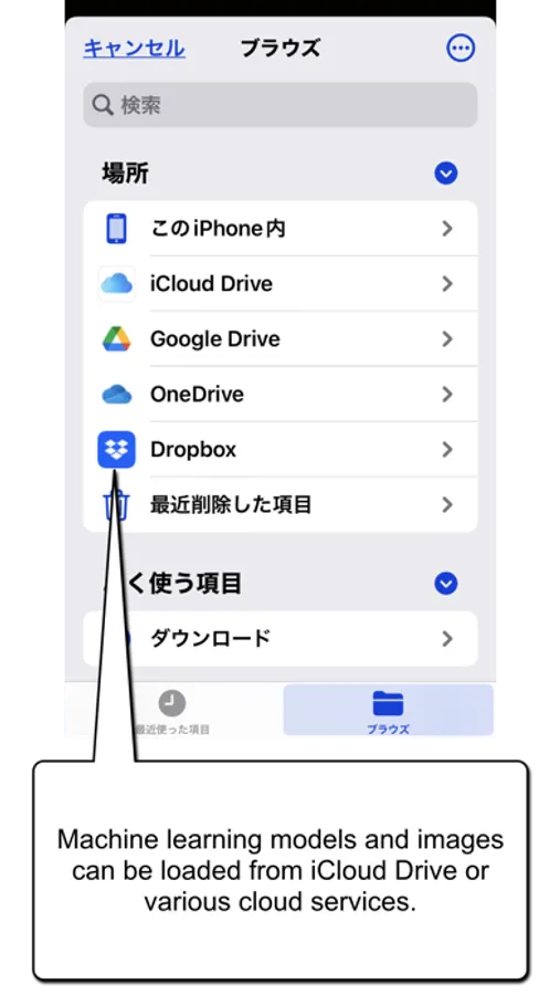 Copy the machine learning model into the iPhone/iPad file system. The file system is the area visible from the iPhone's "File" application, either in the local device or in various cloud services (iCloud Drive, One Drive, Google Drive, DropBox, etc.). You can also use AirDrop, etc.