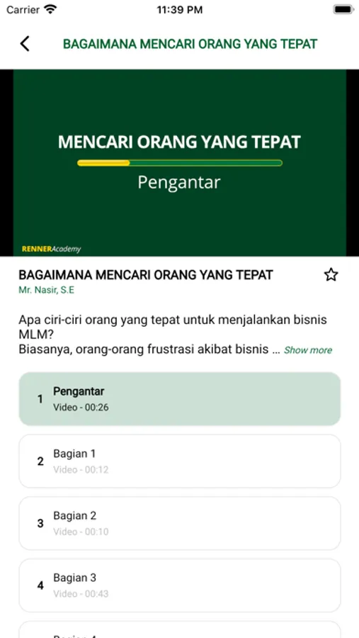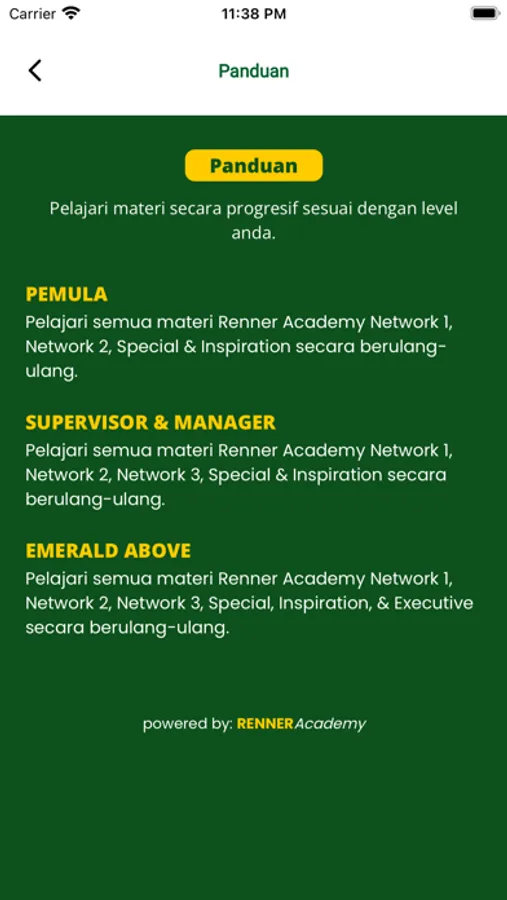 Sebuah Aplikasi yang berisi audio/video panduan pembelajaran dalam menjalankan bisnis Renner.