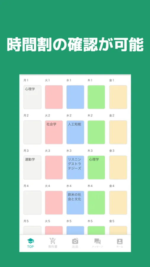 時間割の設定が出来る。そしてその講義の情報を入力することによって、簡単に講義の教科書が見つかる。