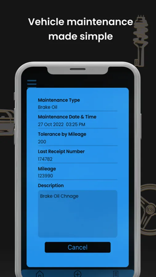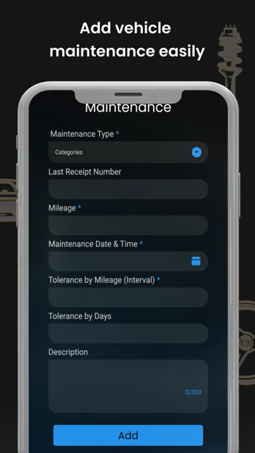 • Add unlimited vehicle maintenance