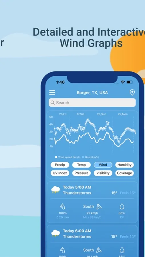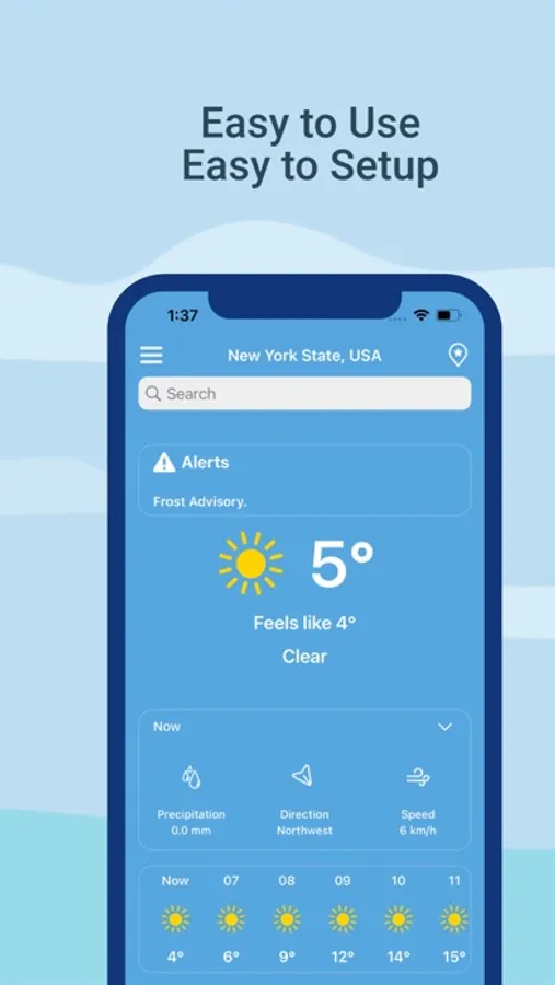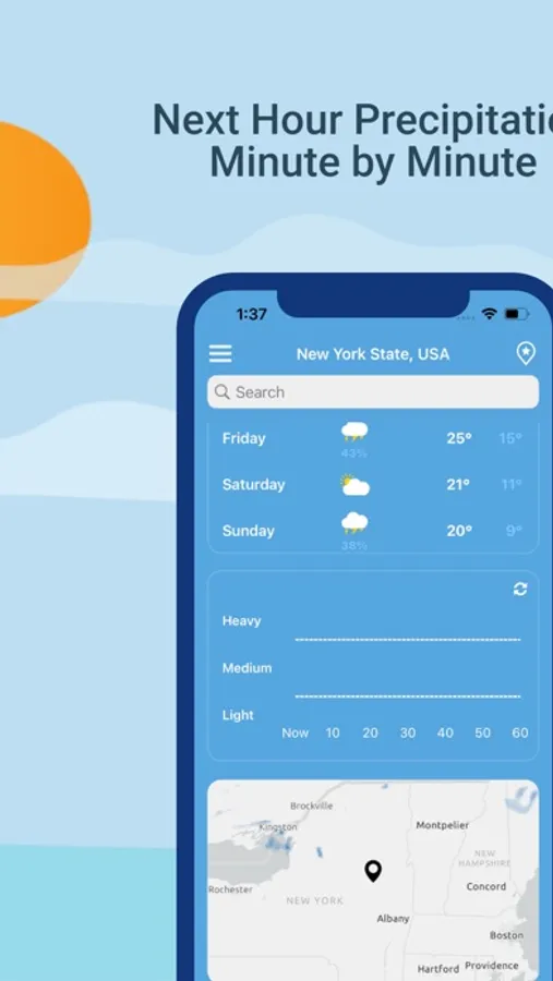Unlike other weather apps, our app displays weather minute by minute. You can easily track the weather in