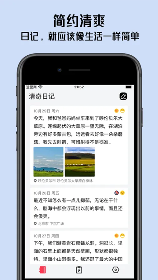 清奇日记是一款简约清爽、纯粹的日记 APP。