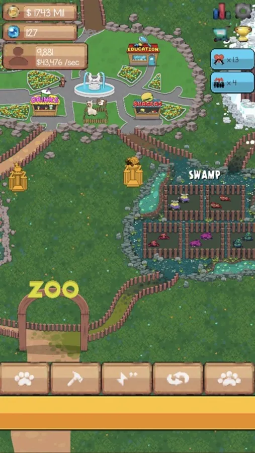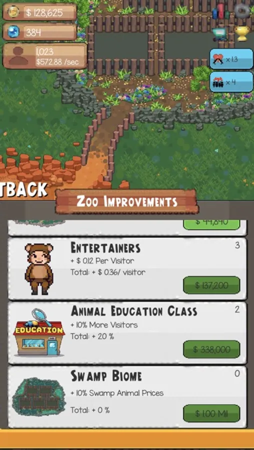• You have to do all of the Zoo Improvements as entertainers, swamp biome, and animal education class to increase the Visitor’s Income