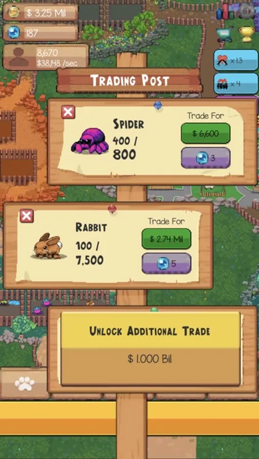 • The Trading Post is available for trading your animals