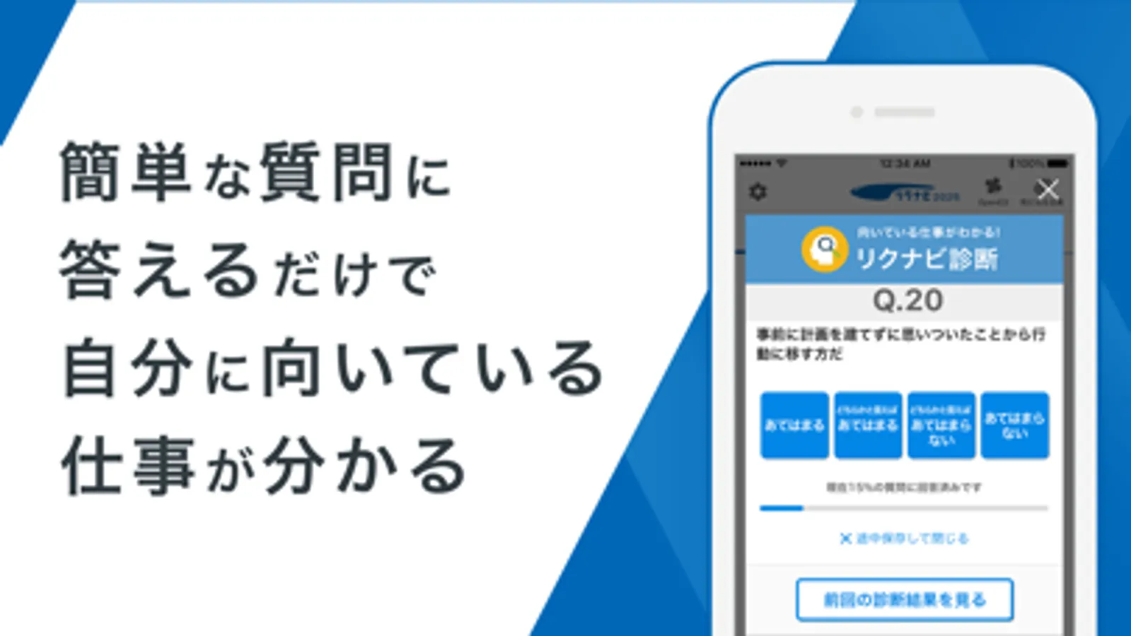 簡単な質問に答えるだけであなたに向いている仕事を知ることができる「リクナビ診断」は多くの先輩が利用した実績のある自己分析ツールです。