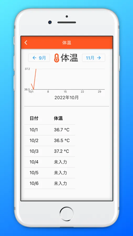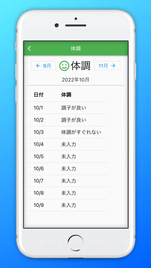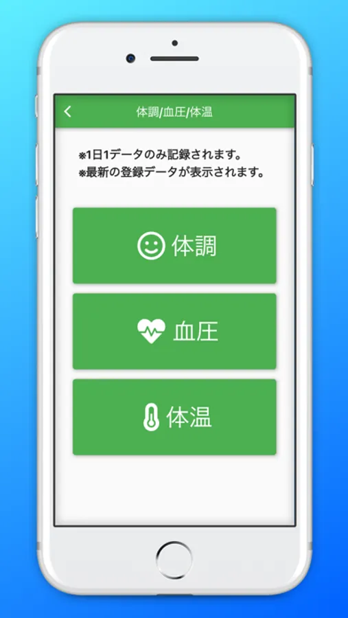 4. アラームが鳴り、止めると体調・体温・血圧を入力(未入力の選択も可)