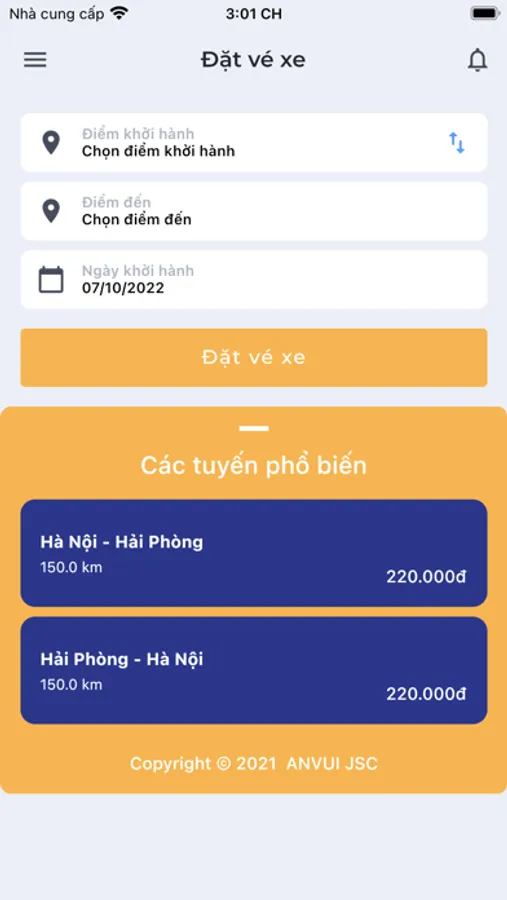 Ứng dụng đặt vé xe Limousine từ Hà Nội đi Hải Phòng và ngược lại của công ty Sơn Hải Tourist