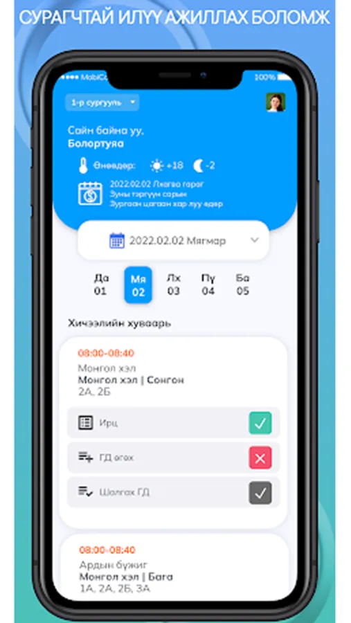 eTeacher аппликейшнийг зөвхөн багш эрхтэй хэрэглэгчид ашиглана. Дараах үйлдлүүдийг хийнэ: