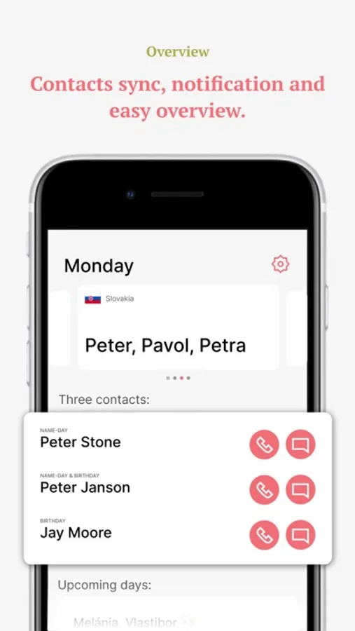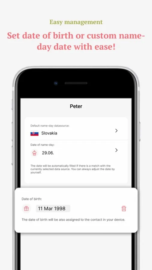 - Contact Synchronization: Easily sync your app with your phone contacts to conveniently manage birthdays, name days, and holidays.