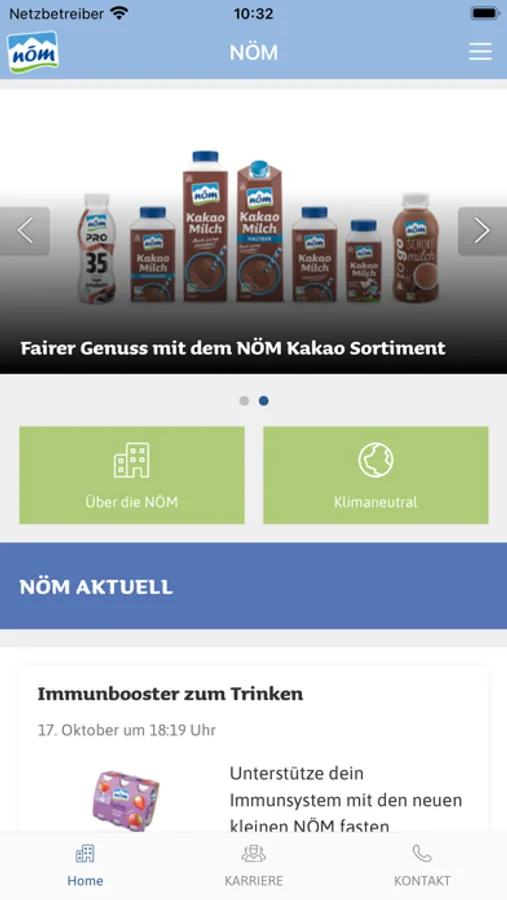 Von den neuesten Nachrichten der niederösterreichischen Molkerei, über Infos zu köstlichen Produktinnovationen, die bald in den Regalen der Märkte zu finden sind, bis hin zu saisonalen Rezepten zum Nachkochen. In der myNÖM sind alle brandaktuellen Informationen der NÖM auf einem Blick zusammengefügt und machen dich zum NÖM Insider. Möchtest du noch einen Schritt weiter gehen, so findest du auf myNÖM auch immer unser Jobangebot. Bewirb dich doch und sei ein Teil unseres großen NÖM-Teams.