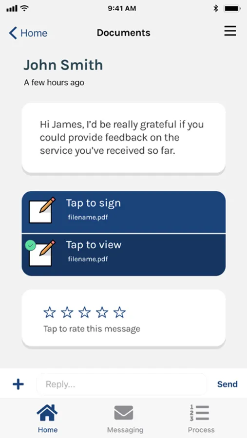 •View, complete and sign forms, or documents, returning them securely