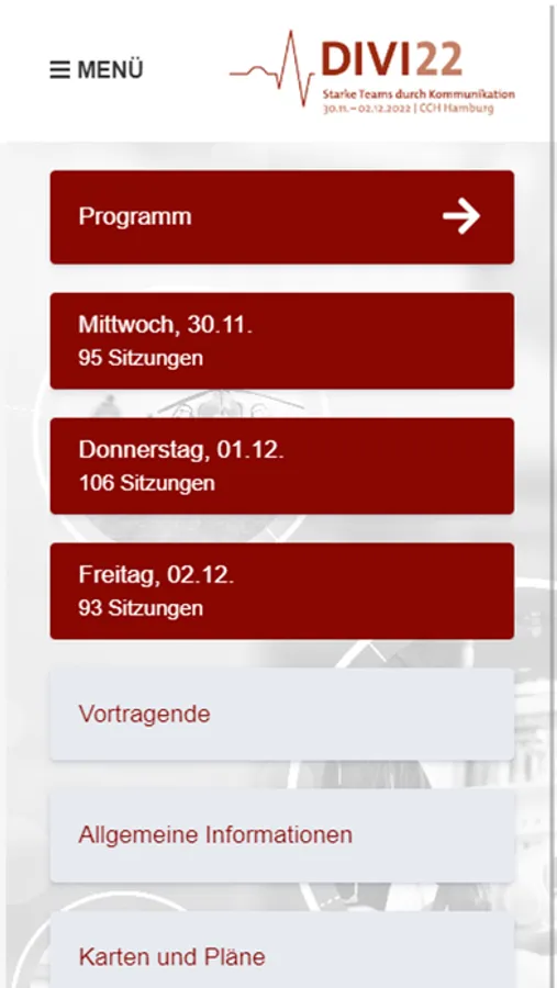 Diese App präsentiert den 22. Kongress der DIVI, vom 30. November bis 2. Dezember 2022 in Hamburg.