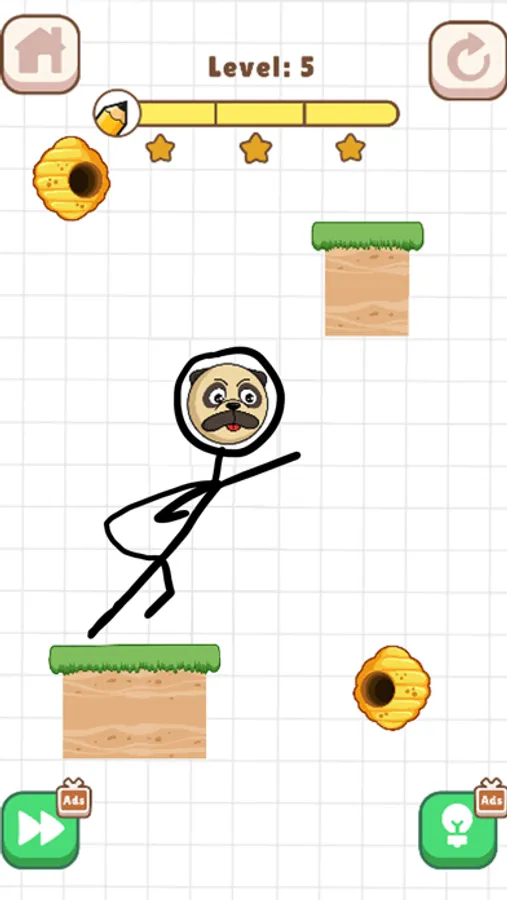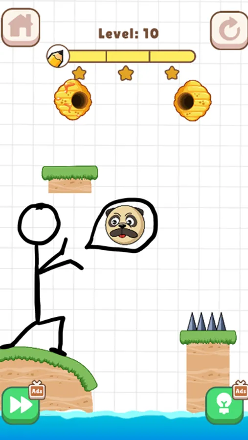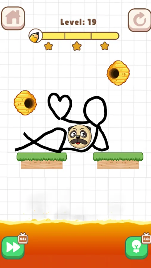 Save The Dog: Bee Draw Puzzle is a trending draw puzzle game. Draw lines to create walls to save the doge from attacks by bees from the hive. You need to protect the doge with the drawn wall for a few seconds during the attack of the bees, hold on and you will win the game. Use your imagination to save the doge.