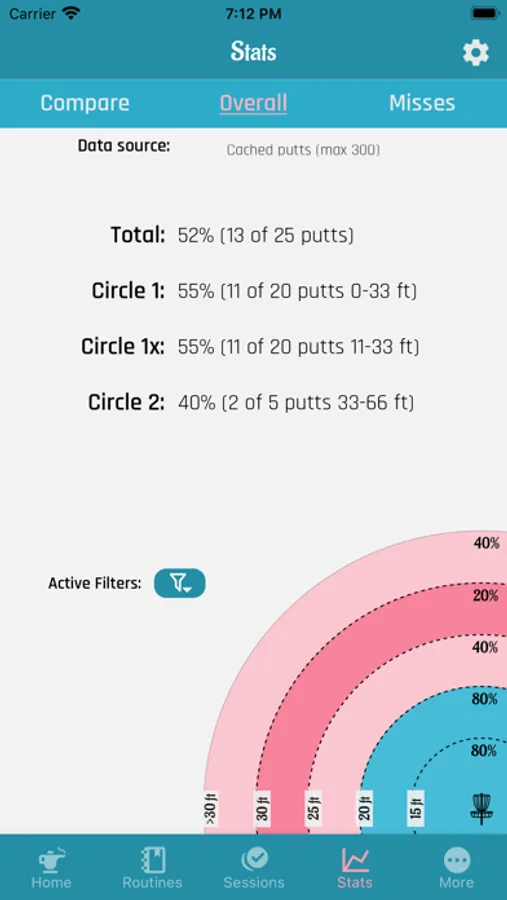 A practice app for disc golfers, complete with detailed and comparable stats about putting tendencies.