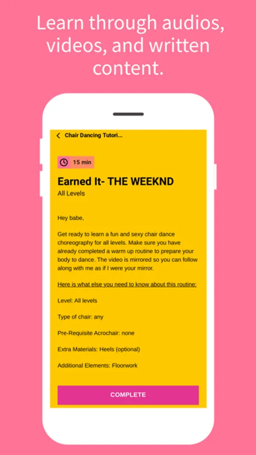 Find Your Sexy® APP is the creative combination of confidence coaching methodologies and sexy chair dancing tutorials designed to inspire, motivate, and empower women. It is a safe space where women are able to freely explore their biggest blockages, deepest desires, and wildest dreams without any judgement. You will be guided on a journey inwards to explore your sensuality, find your true self, and channel the sexual energy needed to take charge of your own life. And of course, all while having a lot of fun, dancing your booty off, and getting into shape! Find Your Sexy® APP is perfect for women who want to feel sexy, empowered, and confident in their skin.