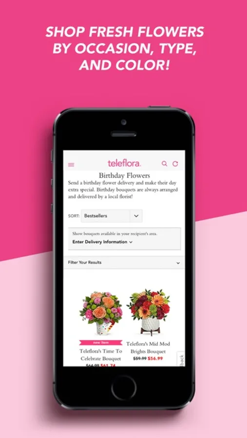 Teleflora’s app makes it easy to order flowers on the go and get flower delivery right to your loved one’s door when you need it! With a huge variety of fresh, local flower arrangements, we're sure you'll be able to find the right flowers to deliver for just about anyone!